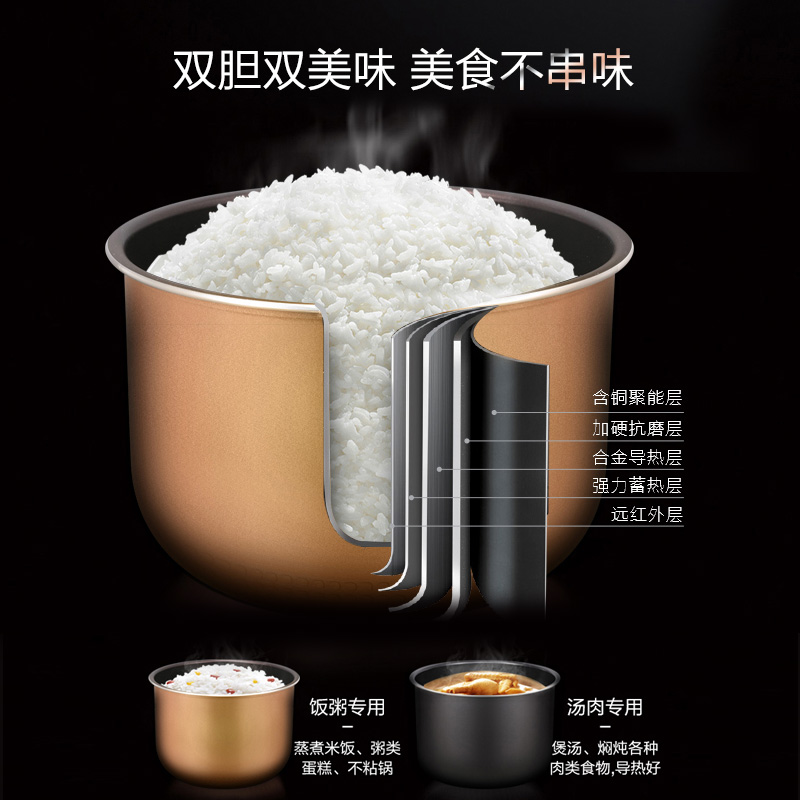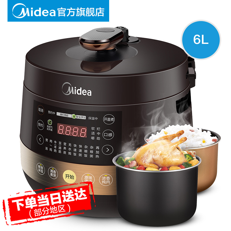 Midea electric pressure cooker home 6L liter double bile smart pressure cooker rice cooker large capacity official 5 people 8 stew