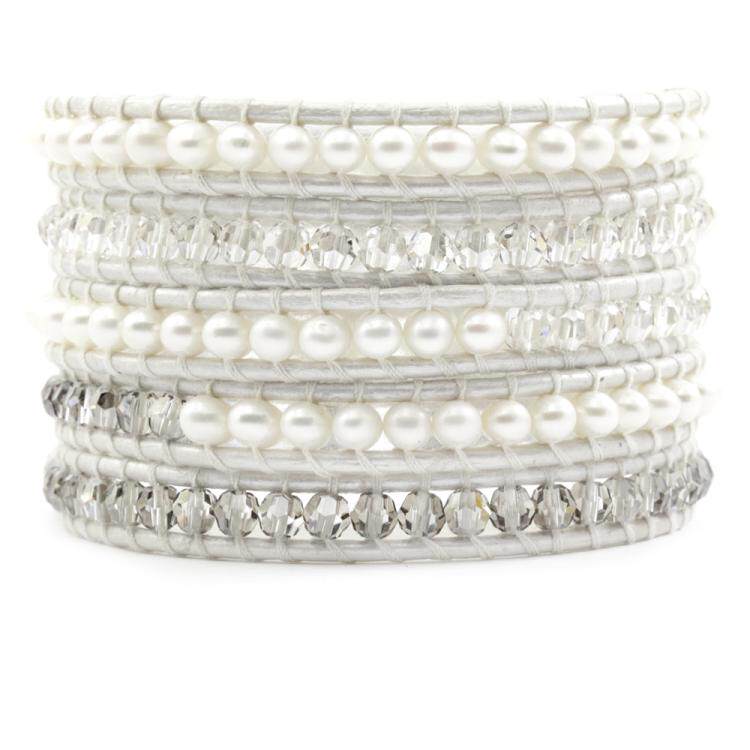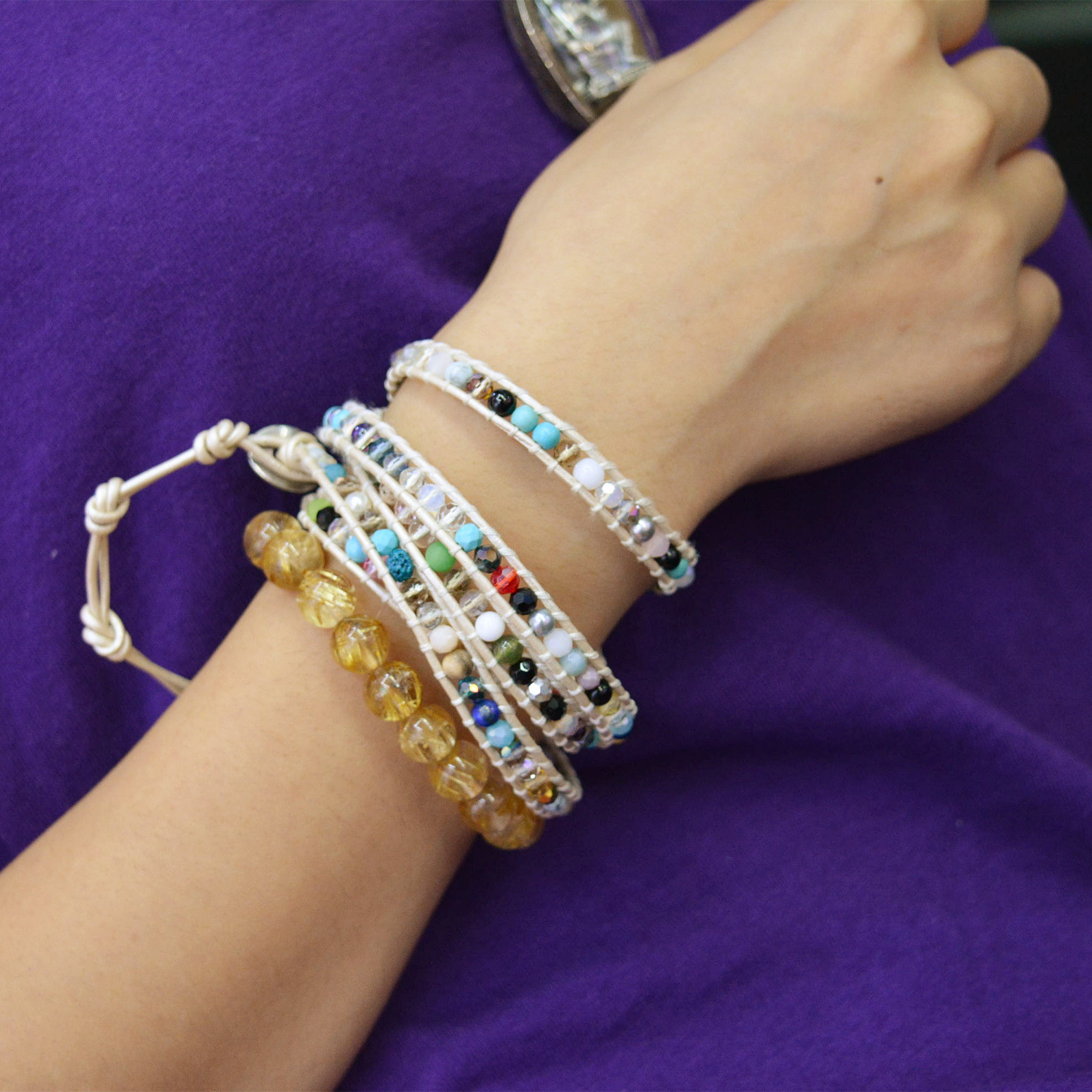 VIKIKO white mixed lap 5-ring bead string multilayer cow leather rope wound hand-woven 100 lapped crystal hand alchemy