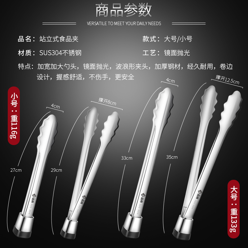 304 Stainless Steel Food Clips Lengthened Food Clip Barbecue Nip Steak Buns Buns Bread Grill Kitchenette