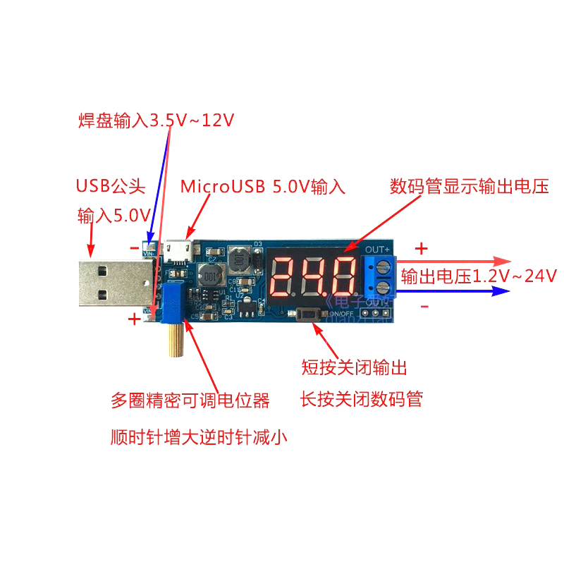 USB voltage 5V conversion module 3W adjustable boost step-down DC voltage regulator 3V3 3V3 7V4 2V3 3V9V24V-Taobao