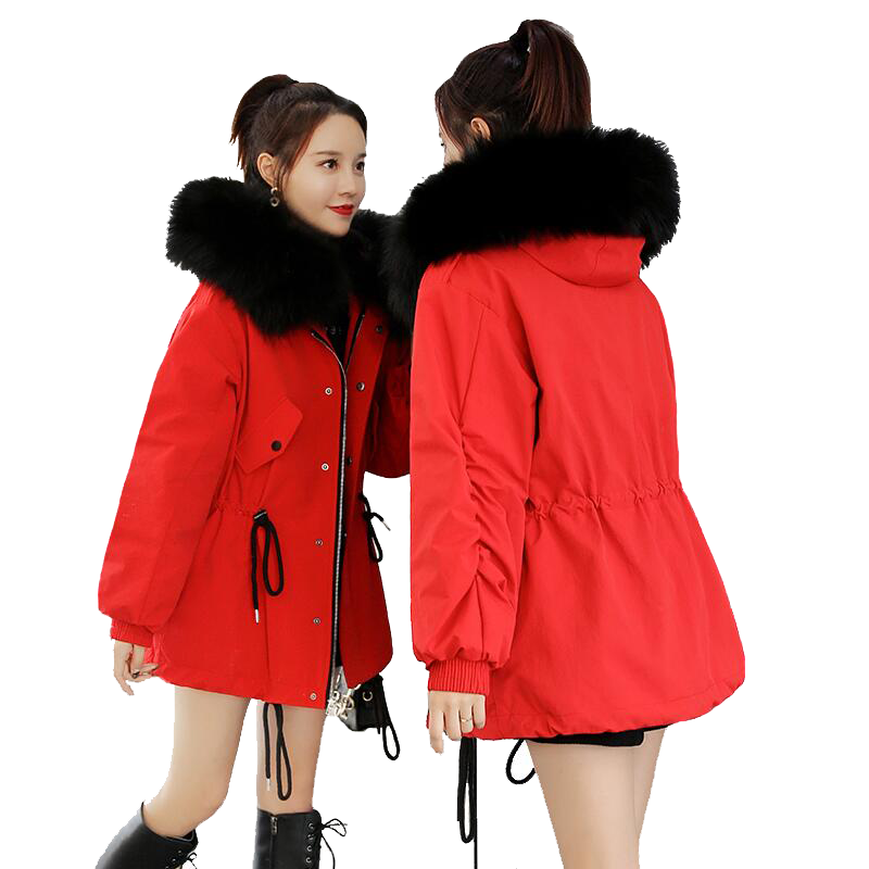Down jacket Women's medium Long version 2021 Winter new Korean version Fashion small collection waist thickened oversized fur collar jacket