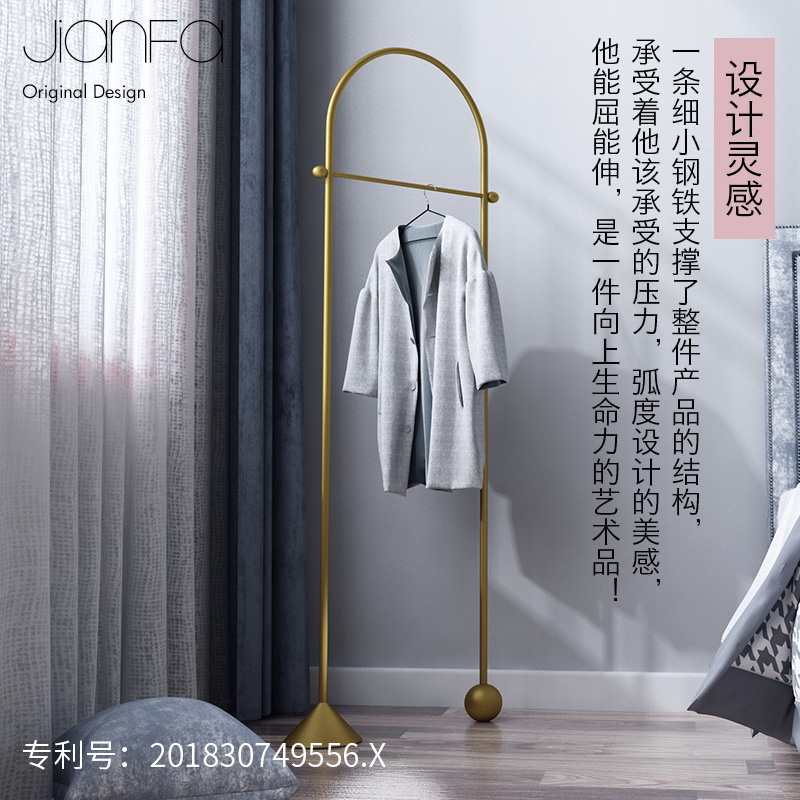 JF designer brand coat rack Nordic ins hanger Floor-to-ceiling bedroom Brass color decorative creative hanger