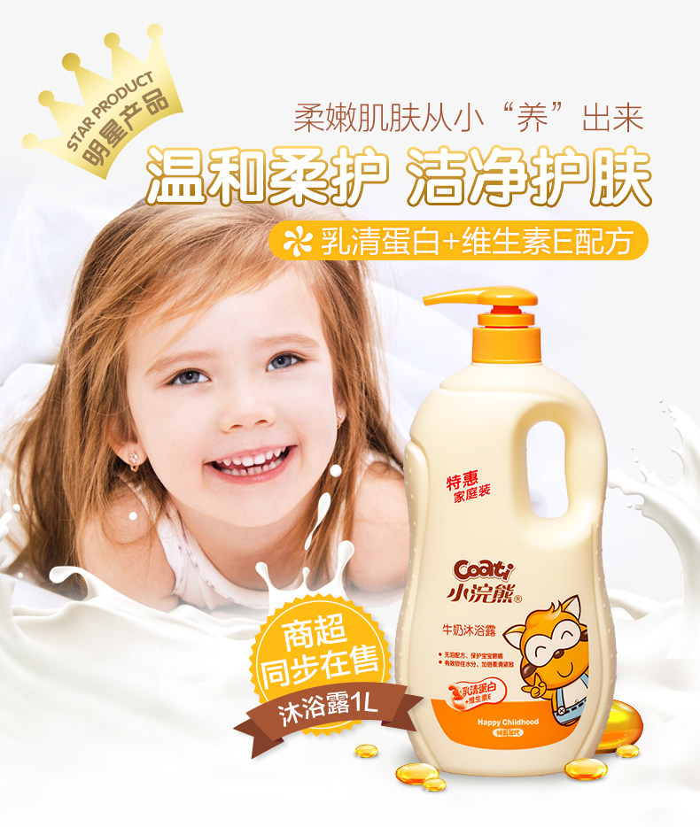 Little raccoon children's milk shower gel infant toiletries baby shampoo for men and women shampoo official flagship