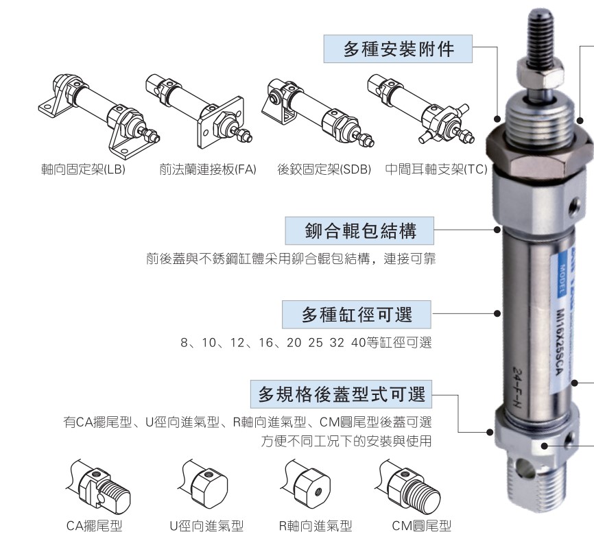 AirTAC Original Loader Yad Passenger Cylinder MI20X100SCA MI20X100SCA MI20X125SCA MI20X150SCA MI20X150SCA