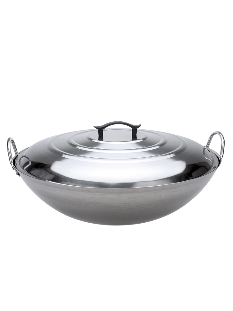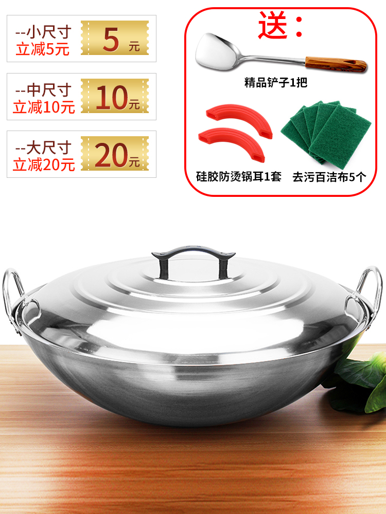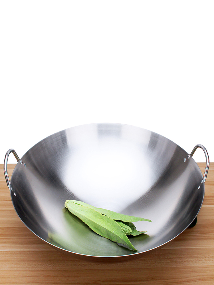 Extra thick non-magnetic stainless steel wok extra large 34-100cm double ears round bottom stir-frying tripod commercial canteen rural large pot