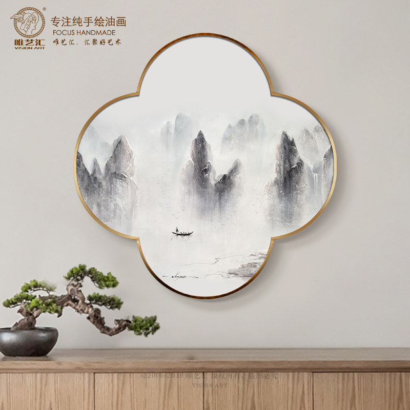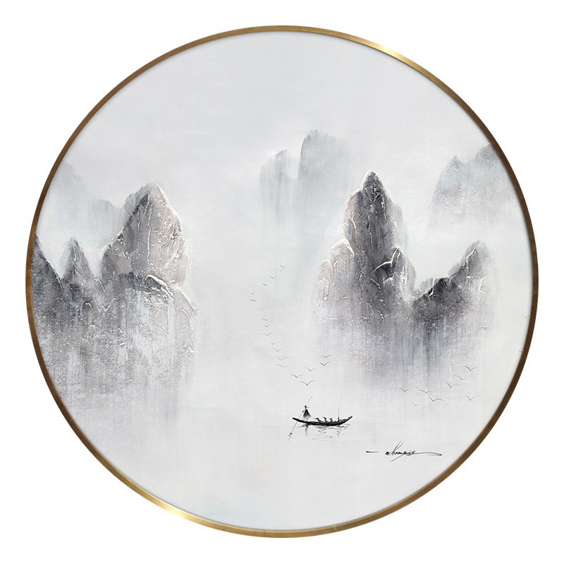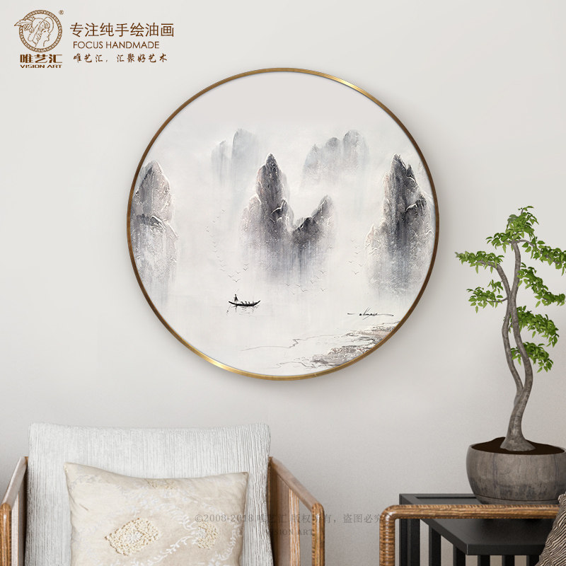 Hand-painted new Chinese style porch decorative painting circular mural living room corridor aisle plain and elegant artistic conception landscape oil painting