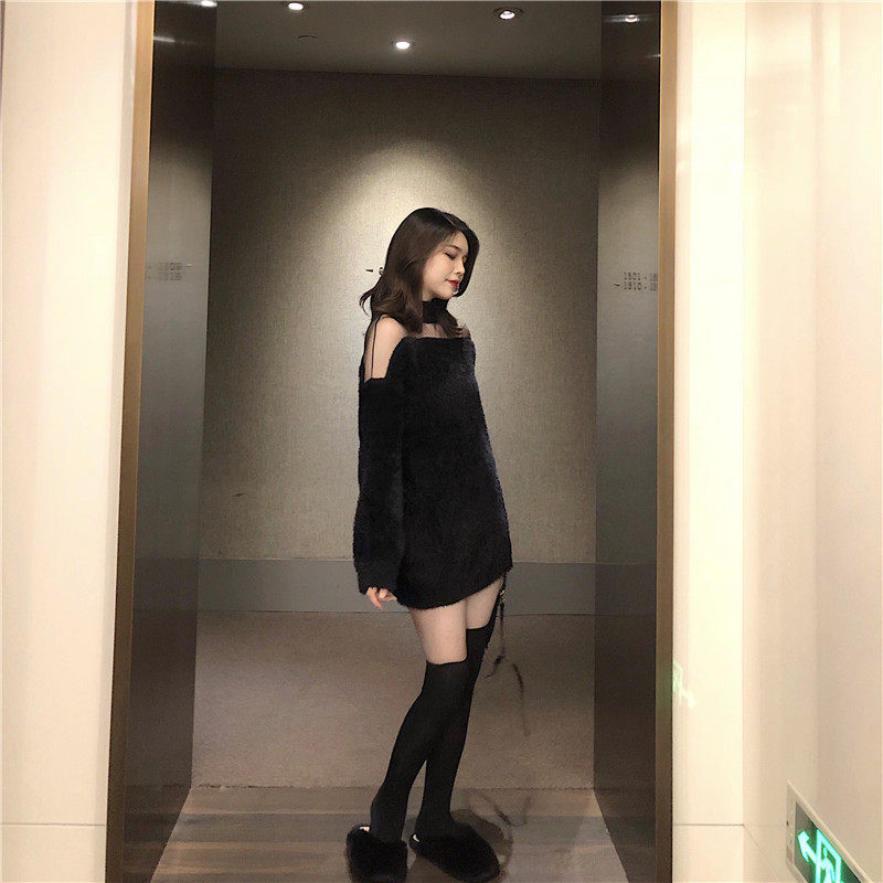 2021 spring and autumn new Korean version of women's loose outside wear French lazy wind sweater pullover with knitwear inside