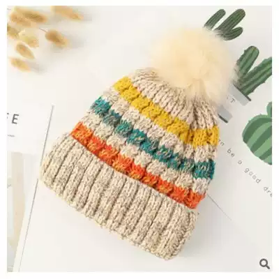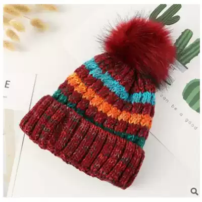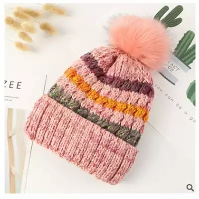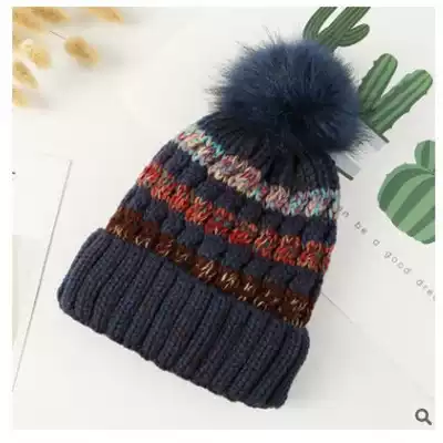 Autumn and winter hat girls new double-layer plus velvet knitted hat ladies Korean ear protection warm hair ball wool hat