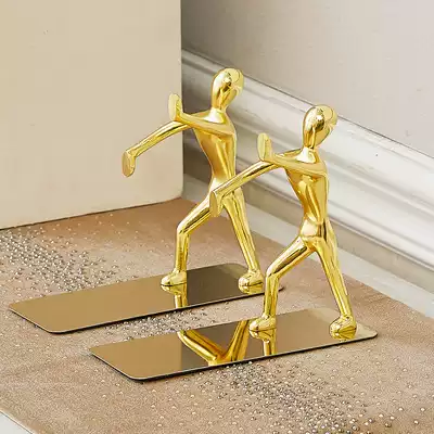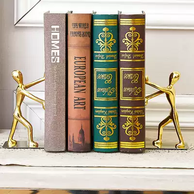 Simple light luxury little gold man book by bookcase study ornaments European style American model room bookend decoration artwork