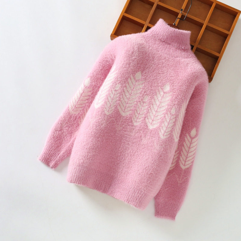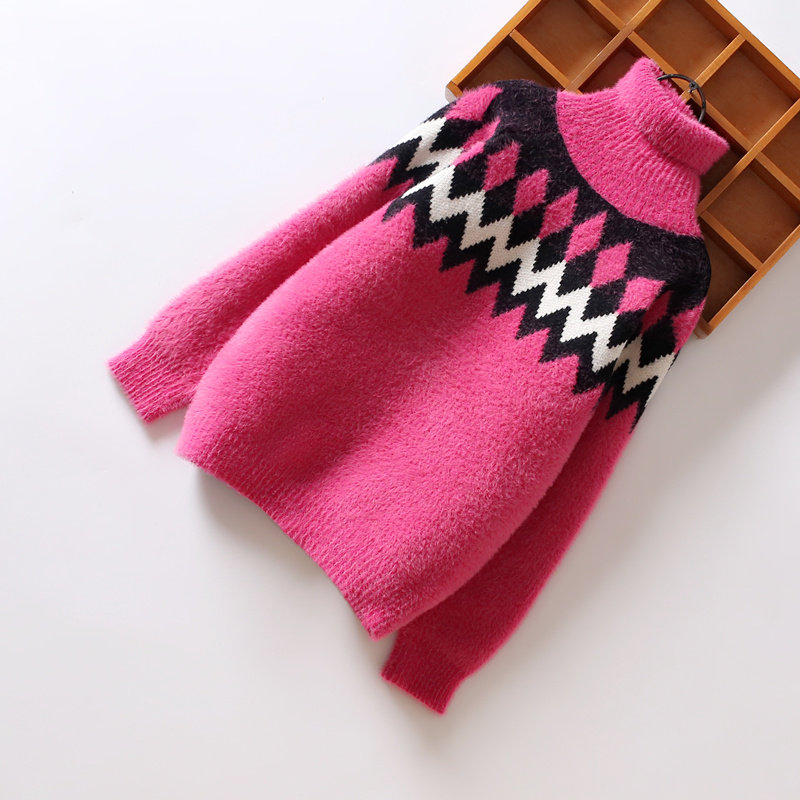 Girl Sweater Ferrets 2021 Autumn Winter Dress New Children Foreign Pie Male Baby Plus Suede Thickened High Collar Undershirt
