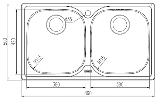 Franka FRANKE sink PFX620B and tap at the top of the