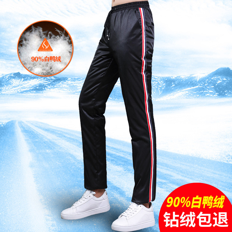 Counter soft outdoor down pants Men and women wear slim young students casual white duck down cotton pants