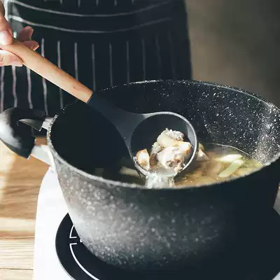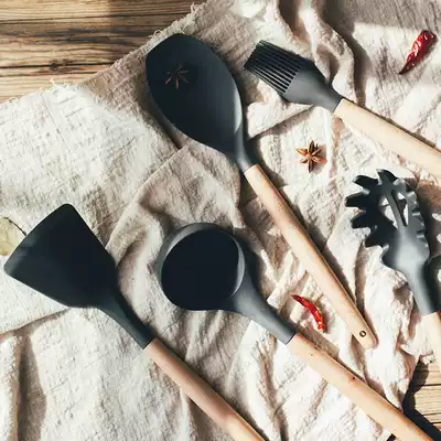 Nordic style household wooden handle frying shovel soup spoon Japanese non-stick pot special high temperature resistant silicone shovel spoon set
