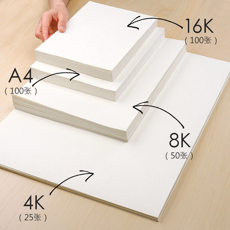 100 sheets of Fast Liwen art sketch paper thickened drawing paper Gouache painting special drawing white paper Watercolor 8k four eight open 4k mass hair A4 sketching 16k Students with beginners Children's graffiti