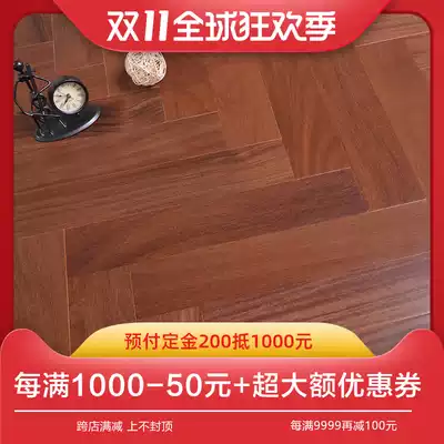 South American dragon and phoenix sandalwood two-wing bean log pure solid wood floor herringboard black walnut color lock buckle resistant to ground heat floor heating