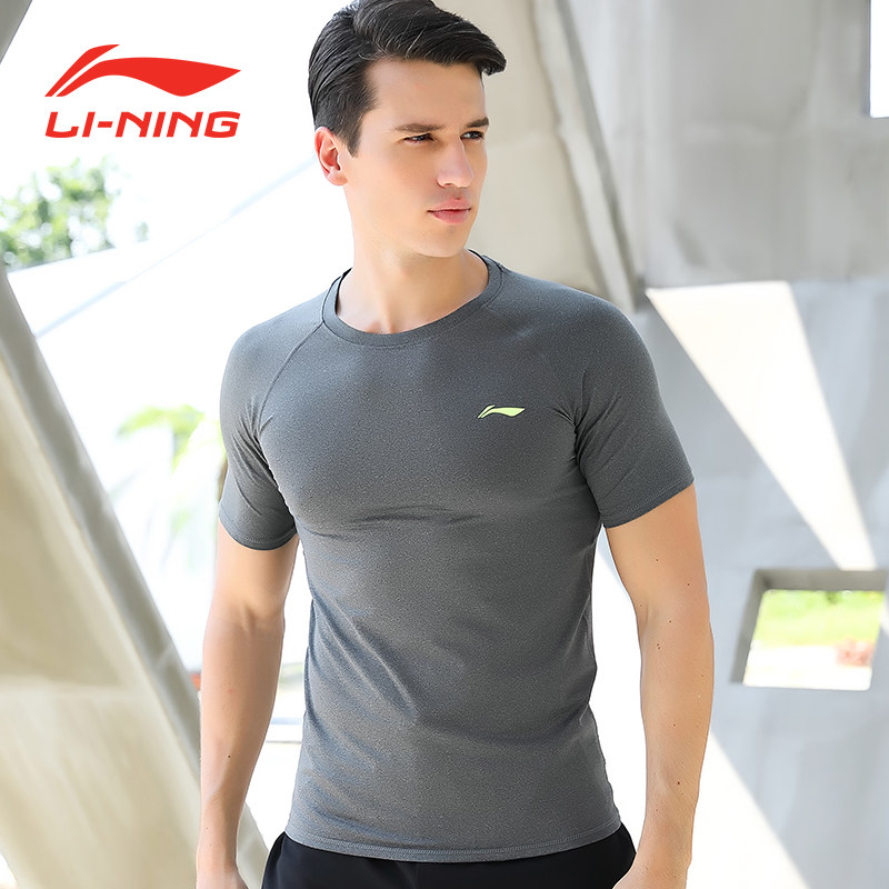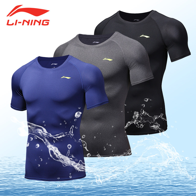 Li Ning Quick-drying sports short-sleeved T-shirt men's tights gym running suit training top compression suit summer crew neck