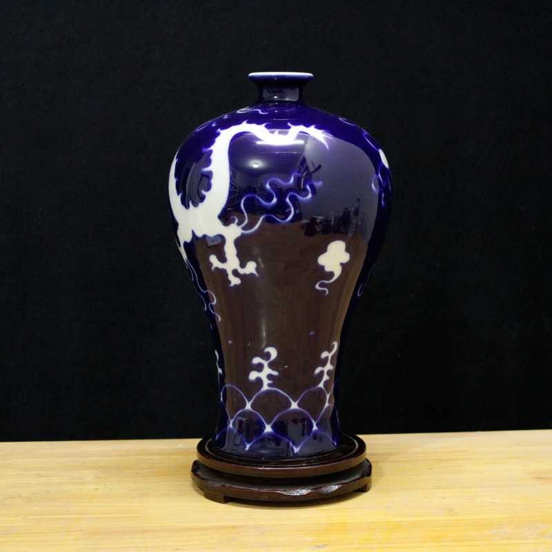Jingdezhen factory goods Yuan sacrifice blue glaze Rereserved white lettering plum bottle Porcelain Factory Stock Vase