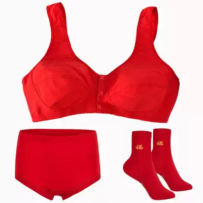 This year's underwear female red mother front buckle bra middle-aged and elderly without steel ring bra vest-style cotton gift box
