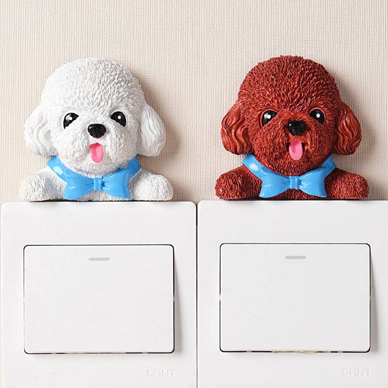 Cute teddy dog switch stickers wall stickers animal socket stickers creative resin three-dimensional wall decoration protective sleeve