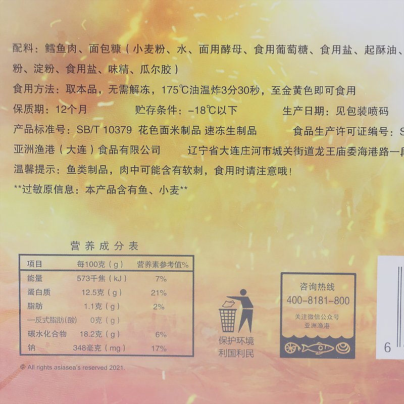 Asian Fishing Port Deep-sea Cod Rafts 310g * 20 Box Cod Burger West Dining Semi-finished Fried Snack