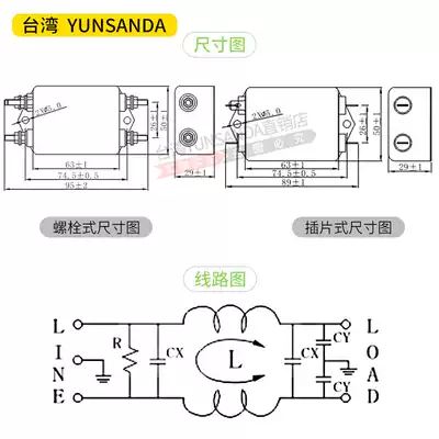 Taiwan YUNSANDA Single-phase 220V Power supply filter CW4-30A-S CW4-20A-T AC EMI