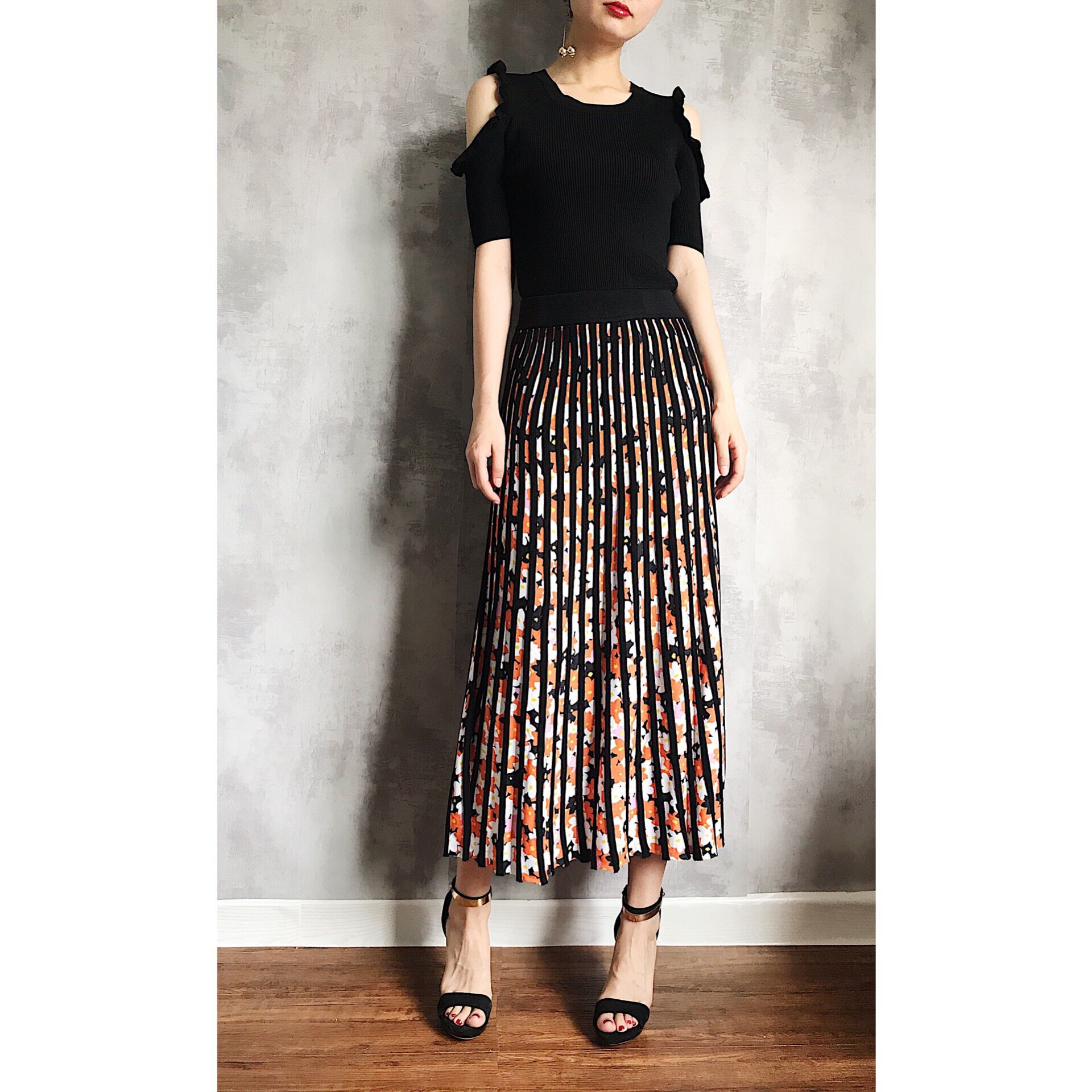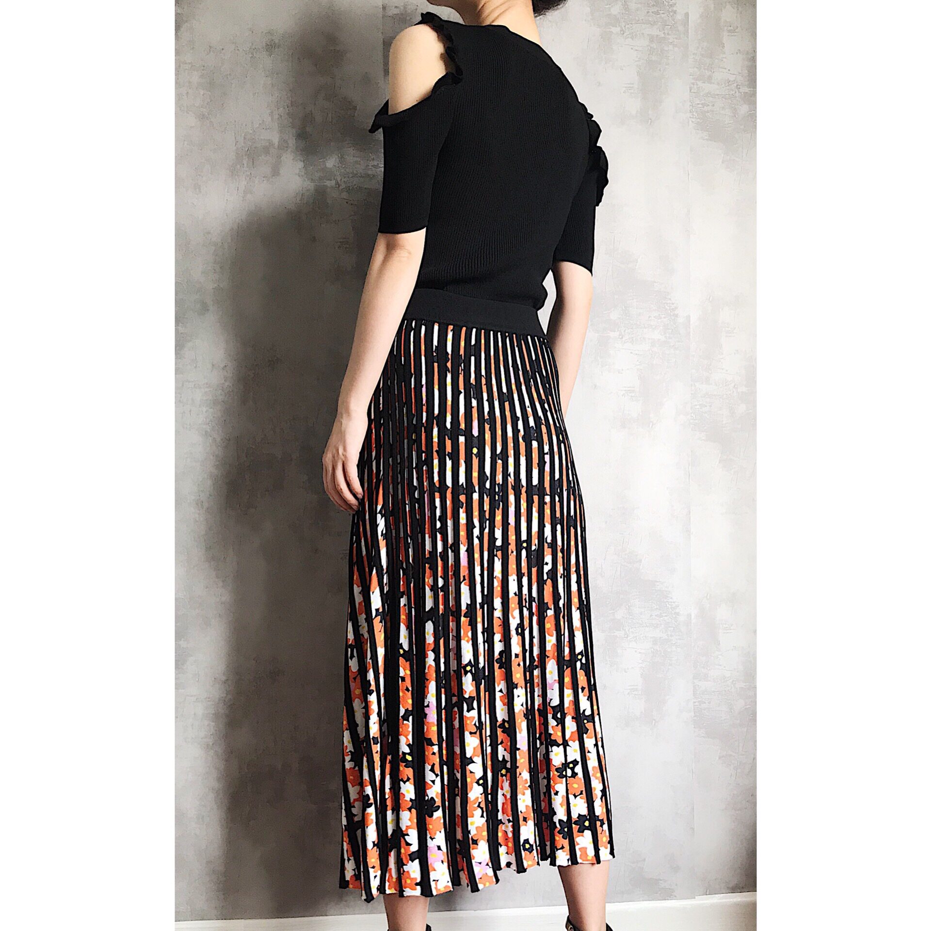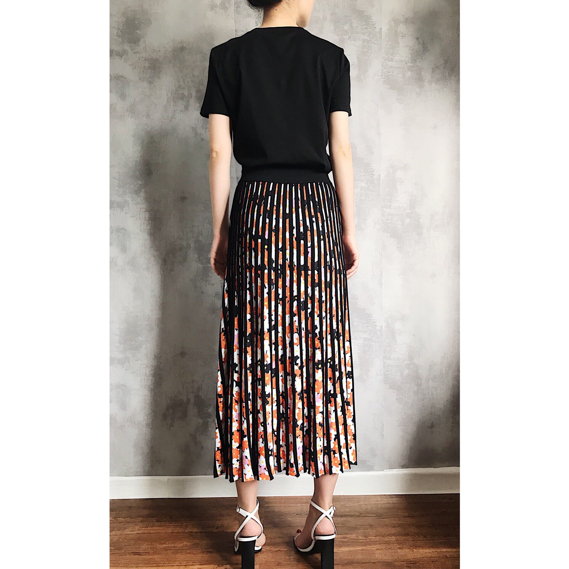 Rugosa M - fold printing heavy knitting small pieces of weaving skirt tightly waist 3D stereo visual summer