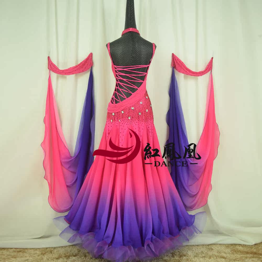 Red Phoenix High-end Asymptotic Color New Morden Dance Contest Dress Rehearsal For National Standard Social Dance Dress BR753
