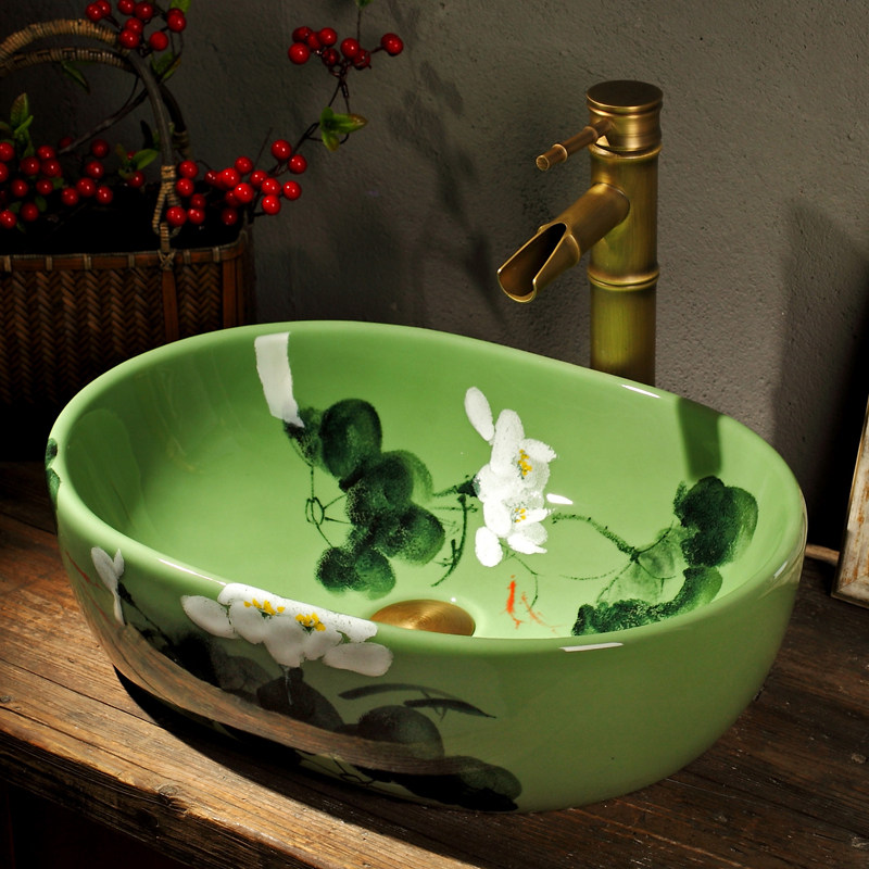 Yellow glazed lotus leaf (single sink) yellow glazed lotus leaf (hardware package A) yellow glazed lotus leaf (hardware package B) hand-painted green lotus (single sink) hand-painted green lotus (hardware package A) hand-painted green lotus (hardware package)