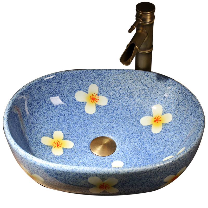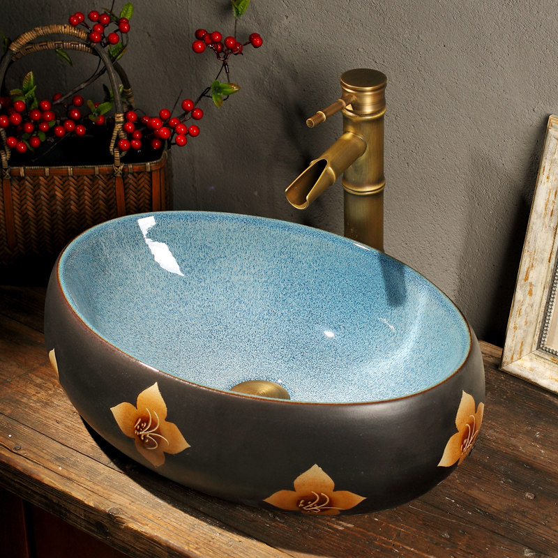 Art Terrace Basin Retro Washbasin Balcony MAKEUP ROOM WASH BASIN FACE O OVAL OVAL WASH SMALL NUMBER 35cm