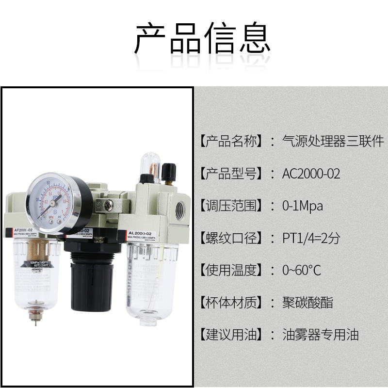 AC2000-02 pneumatic triple piece AF AL air pressure air filter pressure regulating valve SMC type oil-water separator