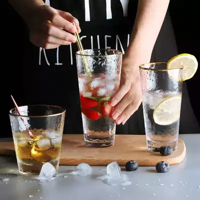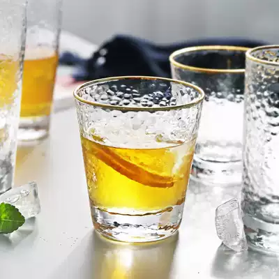Japanese-style hammer pattern glass water cup Household Phnom Penh crystal drawing gold ins wind male living room family drinking water set