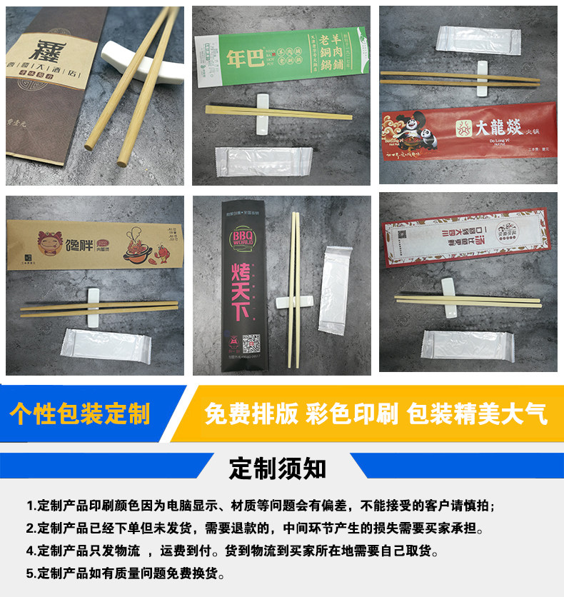Custom disposable chopsticks set lengthened hot pot meal delivery suit wet wipes chopsticks cutlery bag 5000 sets up