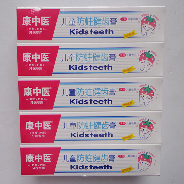 Kang traditional Chinese medicine children's anti-moth toothpaste 50g*4 sticks to protect the gums and prevent dental caries strawberry flavor baby children's toothpaste