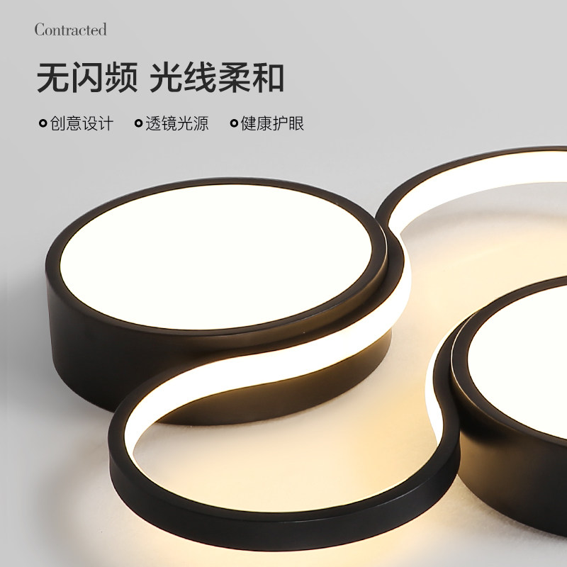 Modern minimalist bedroom lamp Nordic LED ceiling lamp warm creative wrought iron black home study room lamps