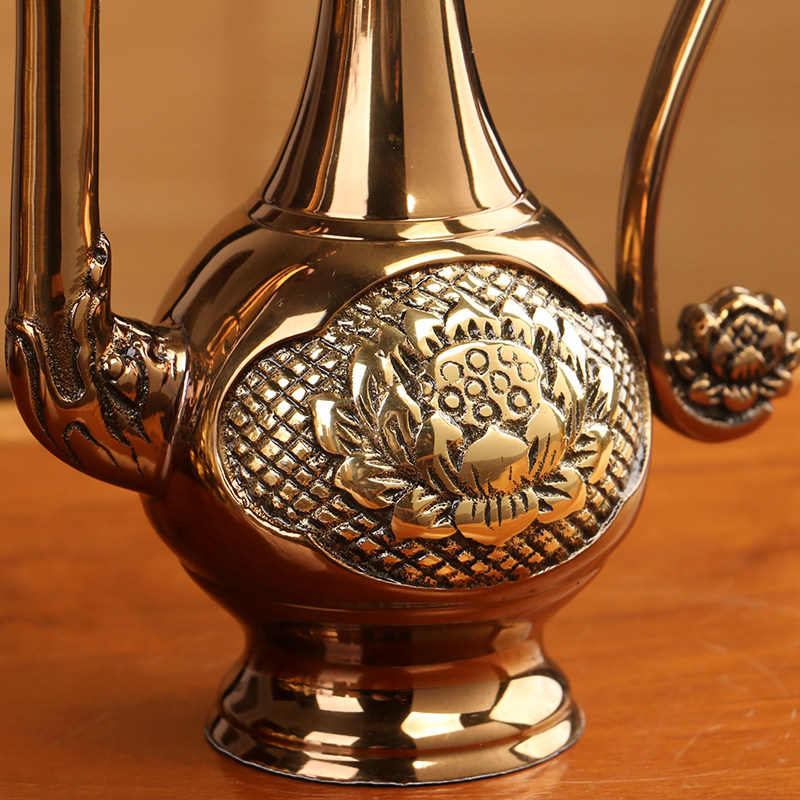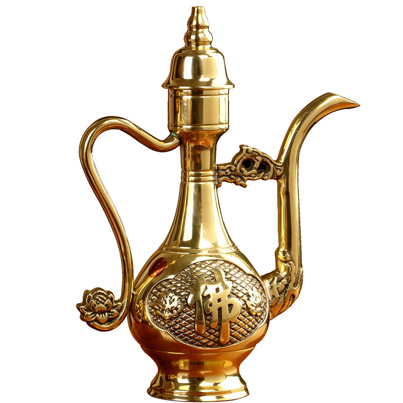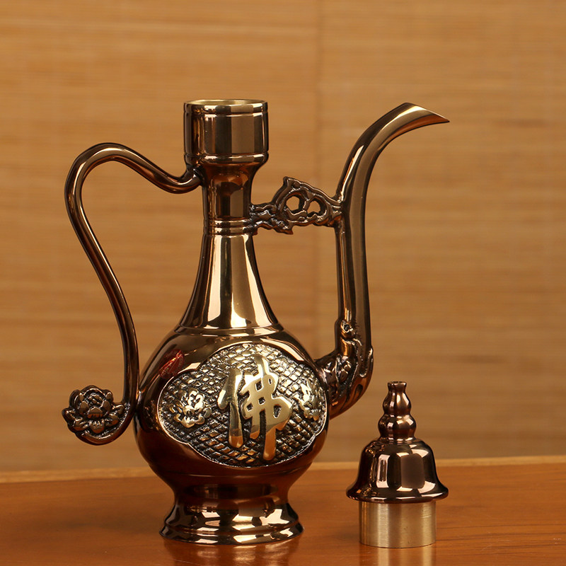 Round Pass Buddha Taiwan Pure Copper Baito God Wine Teapot Teapot Buddha Hall Pendulum with Buddha Words Water Water Supply Cup for the Buddha