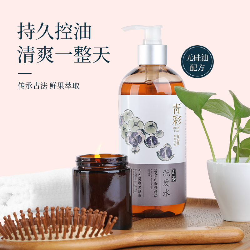Green tea extract Qingcai camellia seed essence shampoo 500ML silicone-free shampoo oil control moisturizing nourishing tough hair