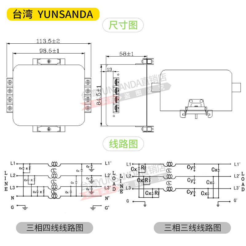 YUNSANDA three-phase three-wire four-wire 380V power filter CW12B-40A-S (005) terminal rail
