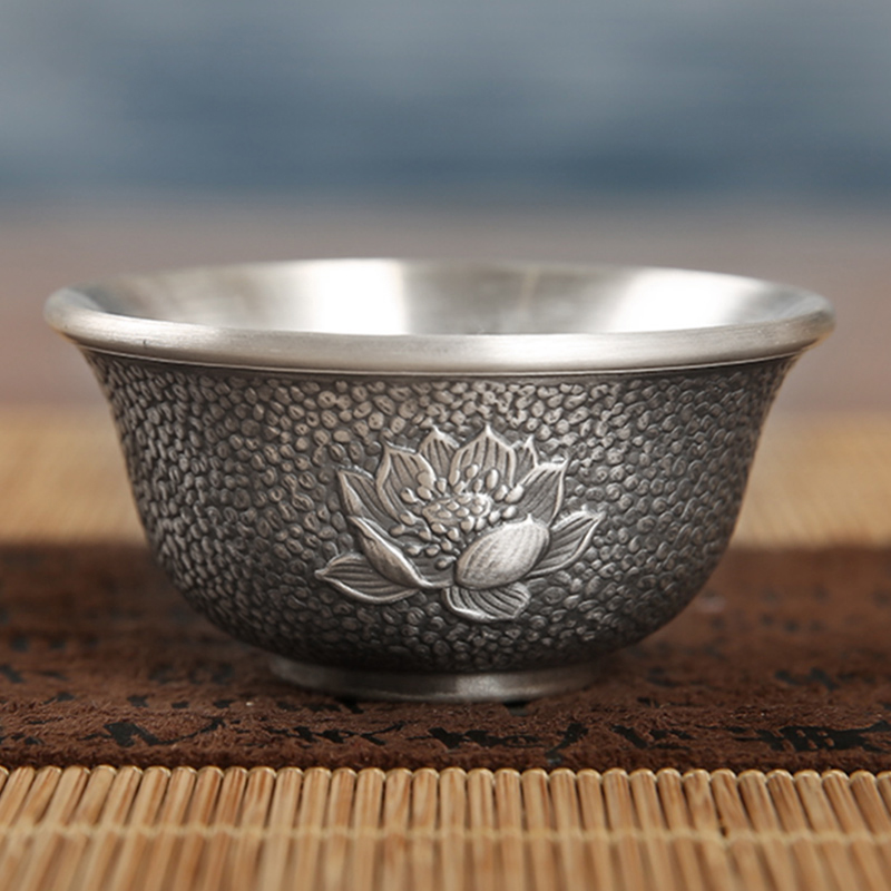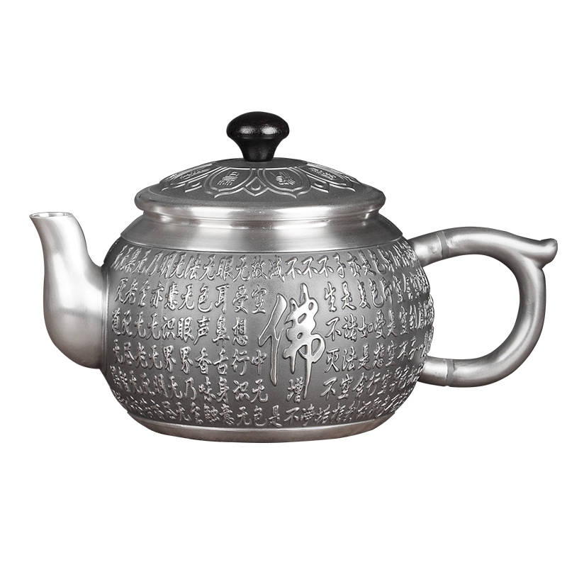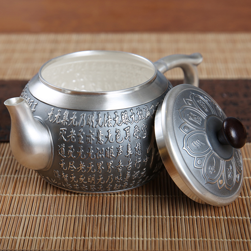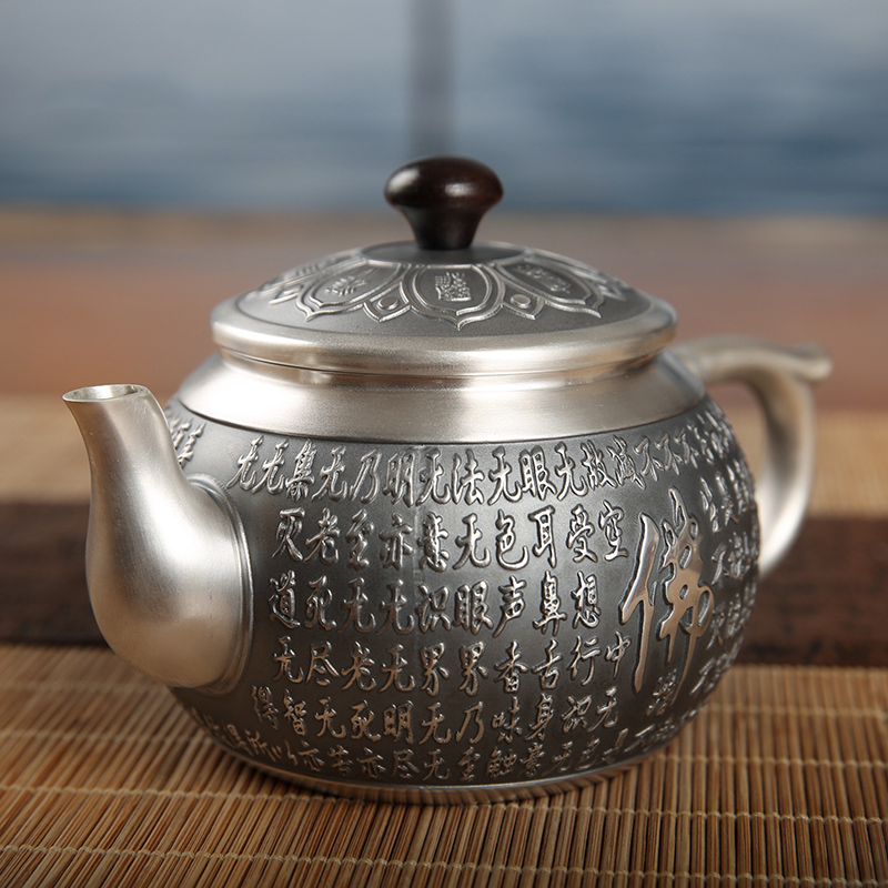 Tai'an silver industry pure silver to make old Buddhist heart warp with silver teapot foot silver 999 tea pot handmade silver merit tea furniture