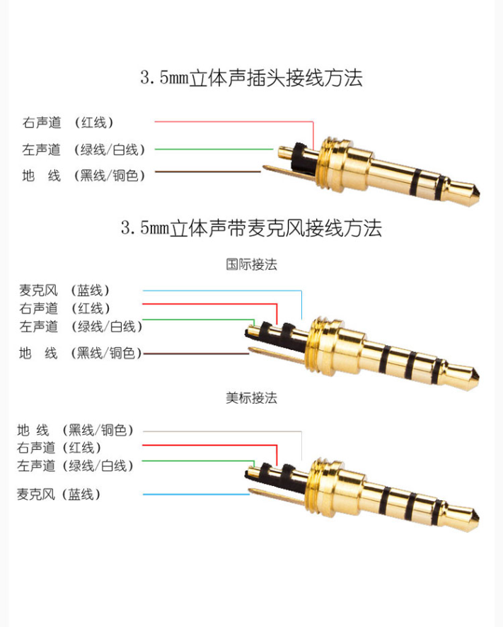 Mobile phone headphones Repair DIY plug 3 5mm Four-section stereo dual track line control microphone 4 Festival with wire clamp