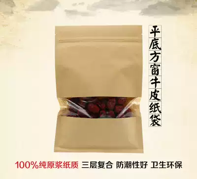 Ziplock bag Kraft paper open window red dates wolfberry thick flat bottom seafood dry goods packaging bag custom logo native products
