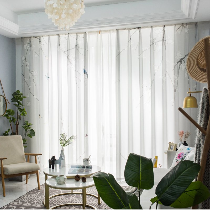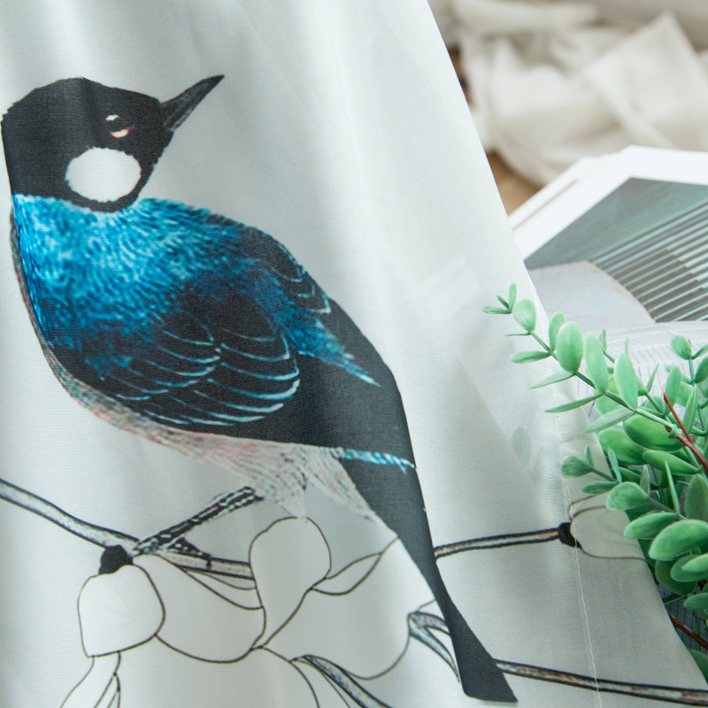 New Chinese style flower and bird festive window screen curtains custom living room bedroom study three-color linen thickened full blackout curtains