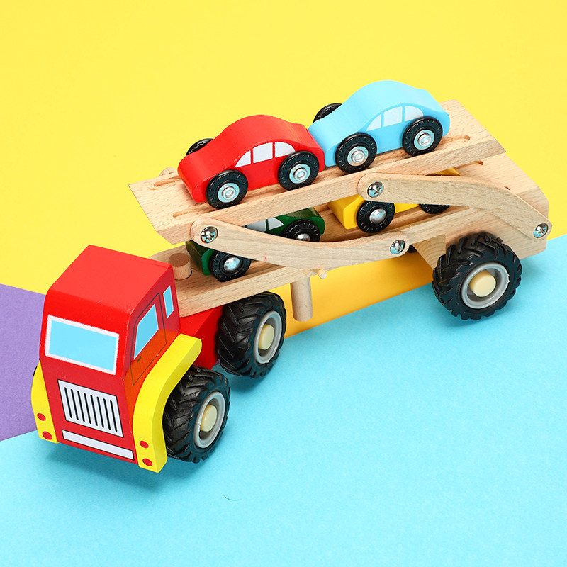 Children's wood removable and diverse simulation model Car parable assembled double deck transporter engineering car card-Taobao