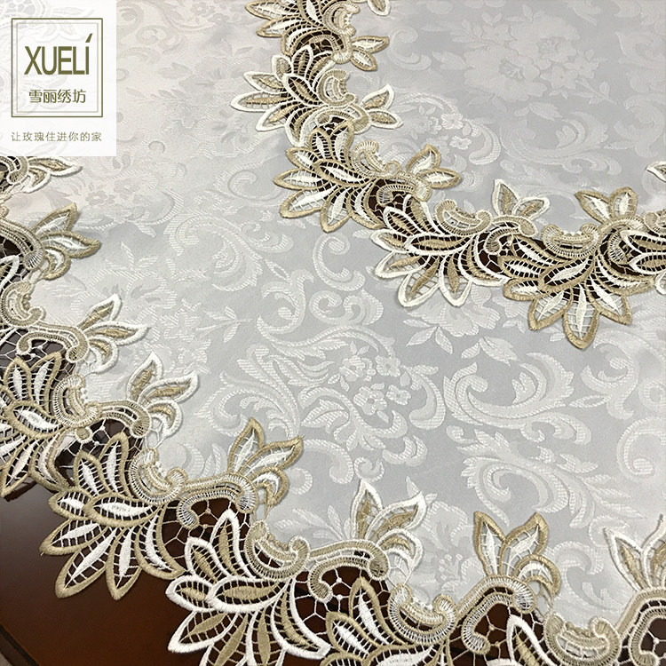 Large round table cloth round tea table cover towels lace floral lace Nordic American style Chinese round table cloth table cushion rice white