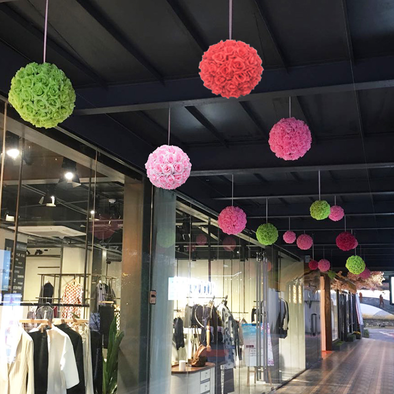 Simulation Rose Ball Wedding Celebration Wedding House Wedding Road Leading Adornment Flowers Polo Silk Flower Shop Mall Pendant Accessories Big Red Green