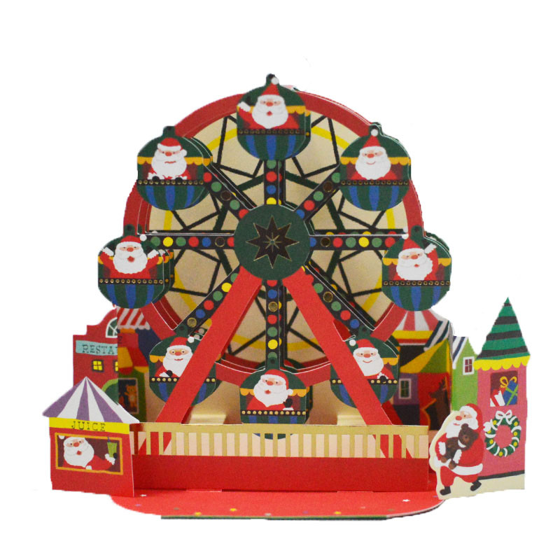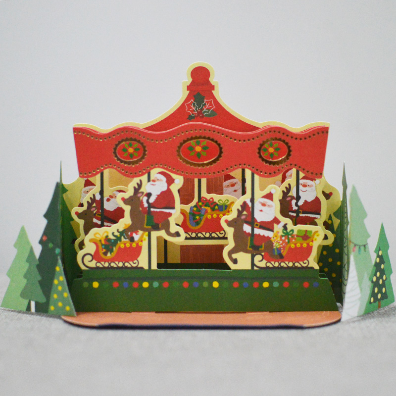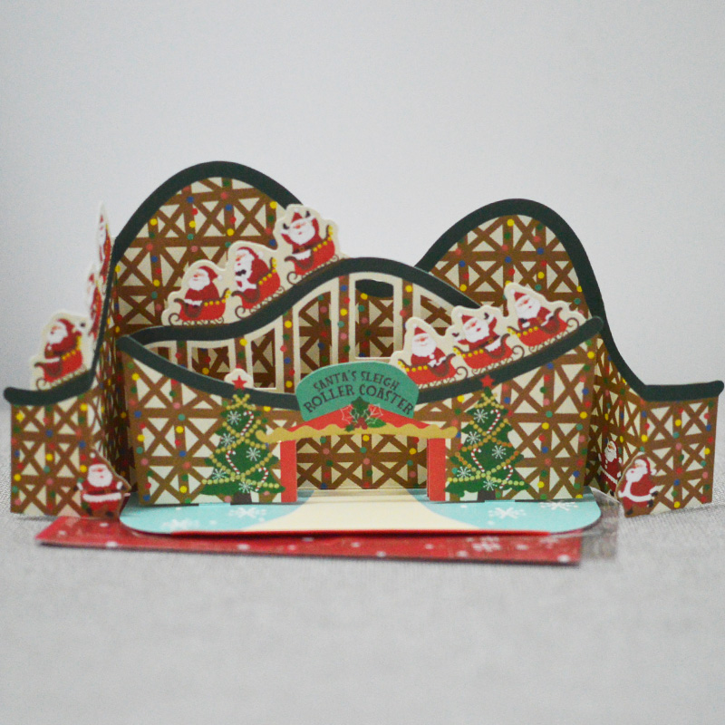Japan Winter Christmas 3D Card Playground Merry-go-round Roller Coaster XMAS Novelty Blessing Greeting Card