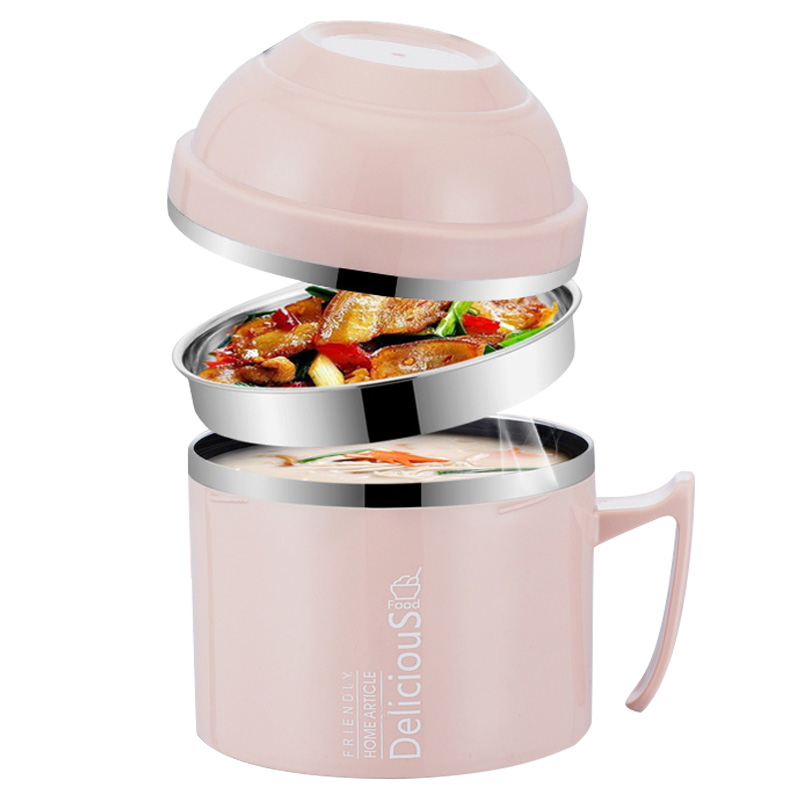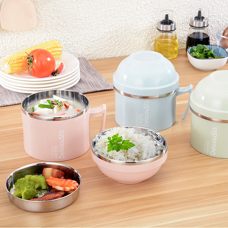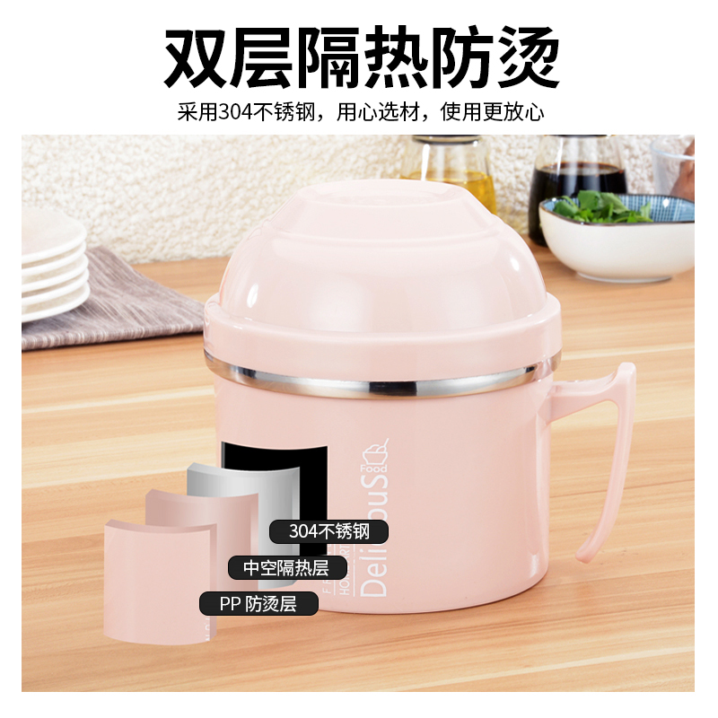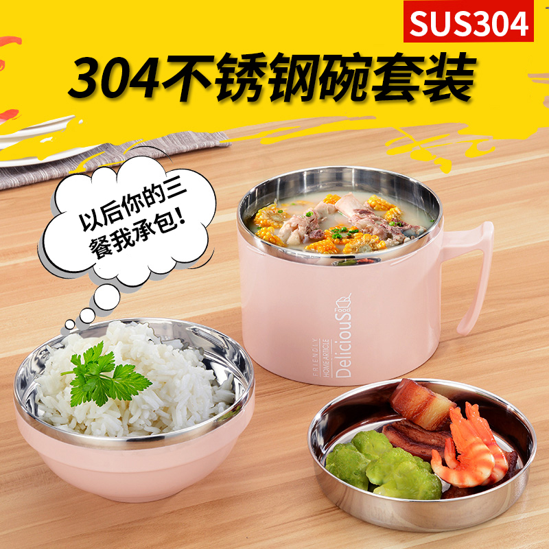 Large 304 stainless steel fast food cup student stainless steel lunch box dormitory bowl chopsticks set with lid lunch box female household instant noodle bowl
