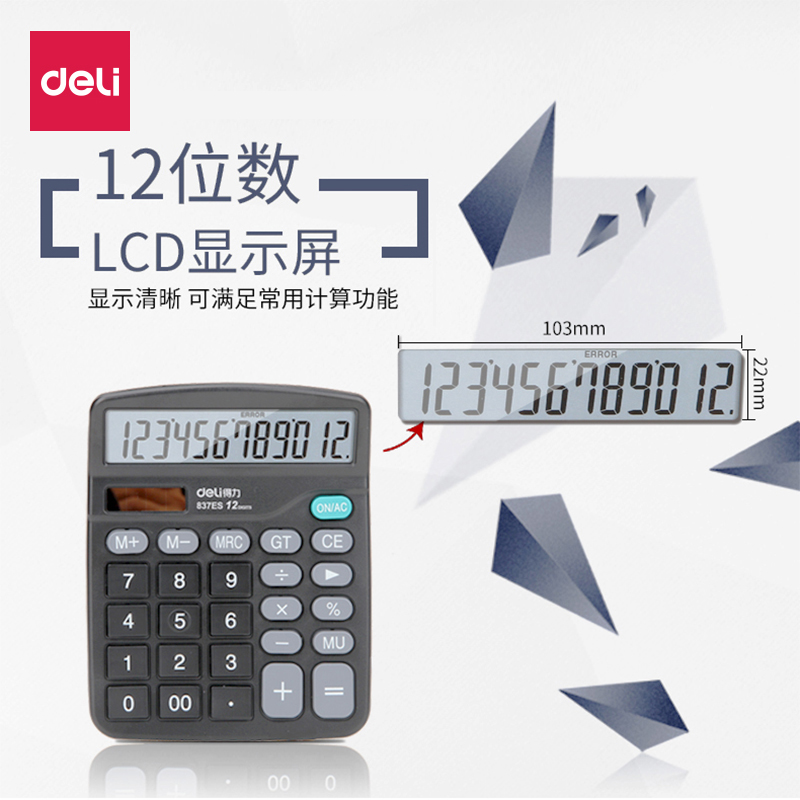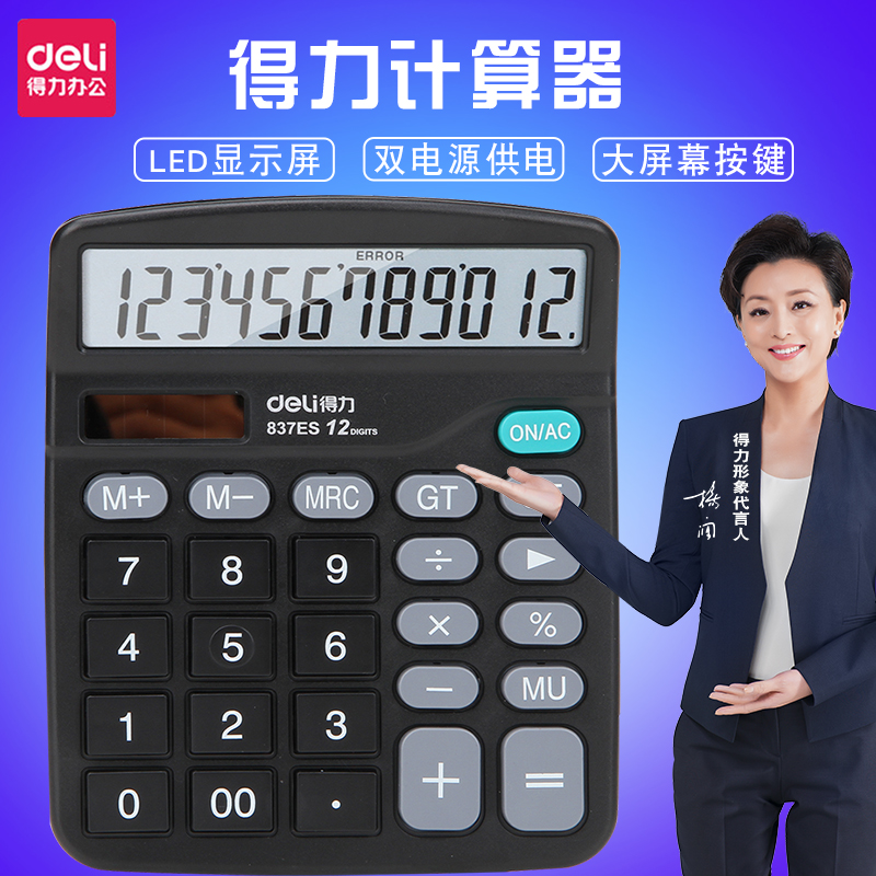 Deli calculator Solar computer 837ES dual power calculator Office large button large screen horizontal multi-function business calculator Easy to use for students ' exams