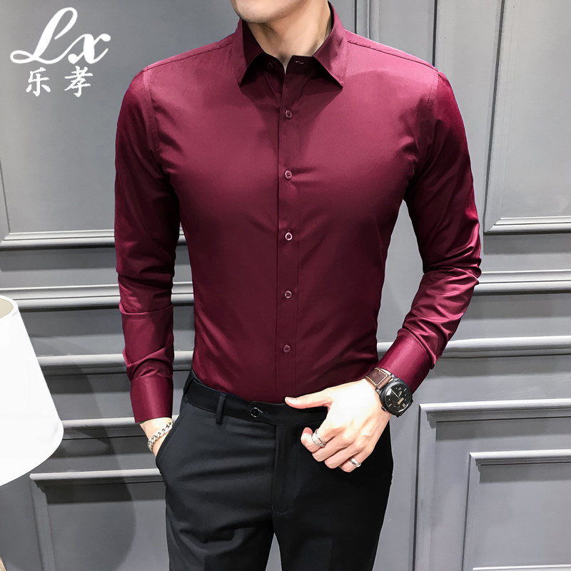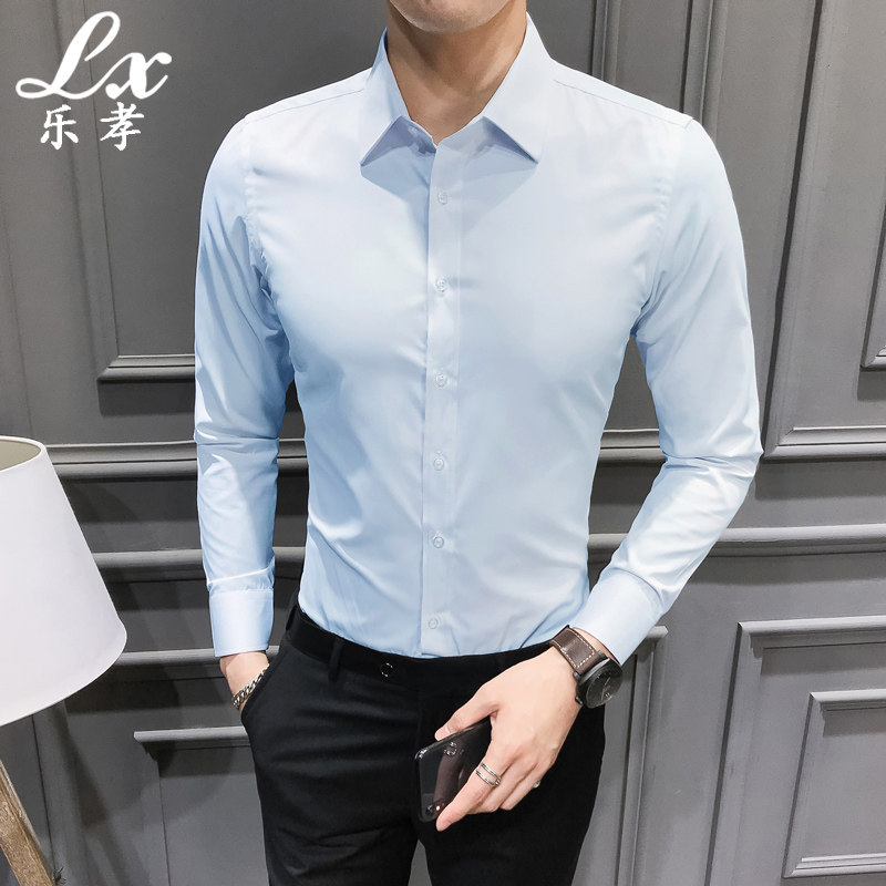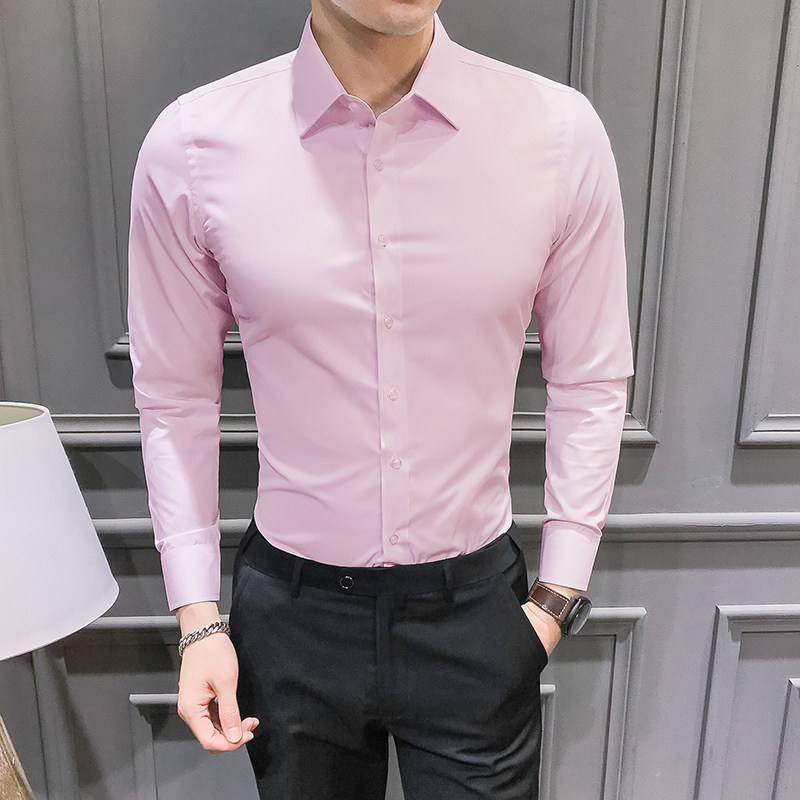 Long Sleeve Shirt Male Senior Feel Business Casual Pure Color Large Size Shirt Youth Sashimi Professional Frock White Shirt