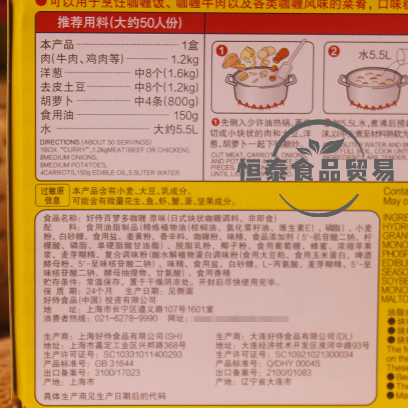 Haoshi Baimenduo Japanese-style curry block original flavor 1kg commercial yellow curry fish ball beef chicken rice Gali cuisine