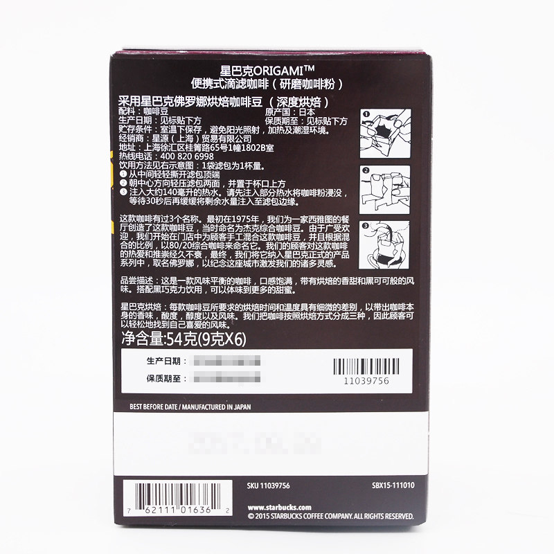 Starbucks ear-mounted coffee Black coffee Pure coffee powder bag Froona coffee original imported coffee 6 bags